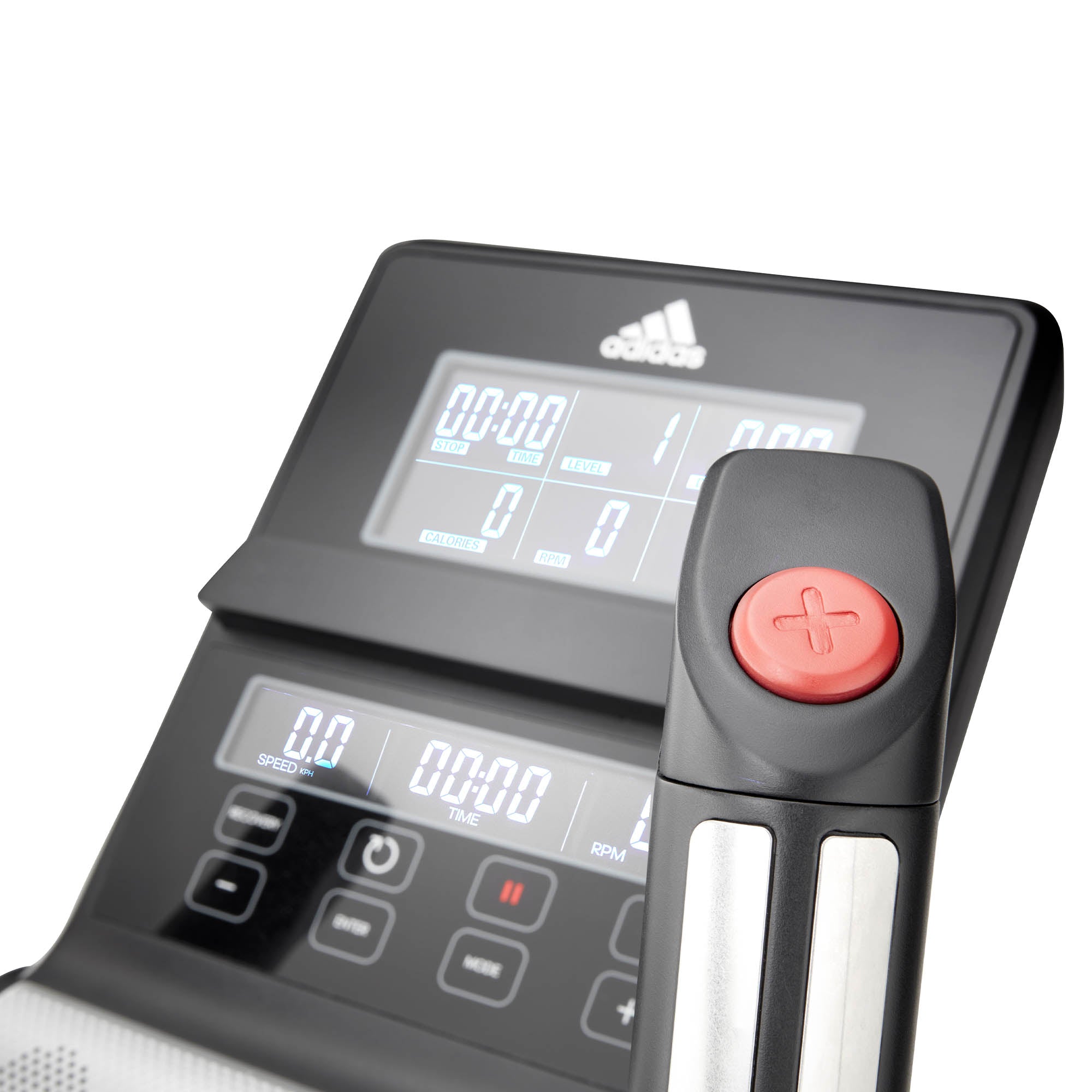 The adidas X-21 Cross Trainer is ideal for all-round fitness, allowing you to build muscular and cardio endurance without having to put impact strain through sensitive joints. The rear-drive 10 kg / 22 lb flywheel is efficient at storing kinetic energy, which in turn maintains momentum and creates a smooth, quiet elliptical motion. You can easily adjust the intensity of your workout by using the quick resistance keys located on the fixed handlebars to select one of the 24 levels of electronic resistance.