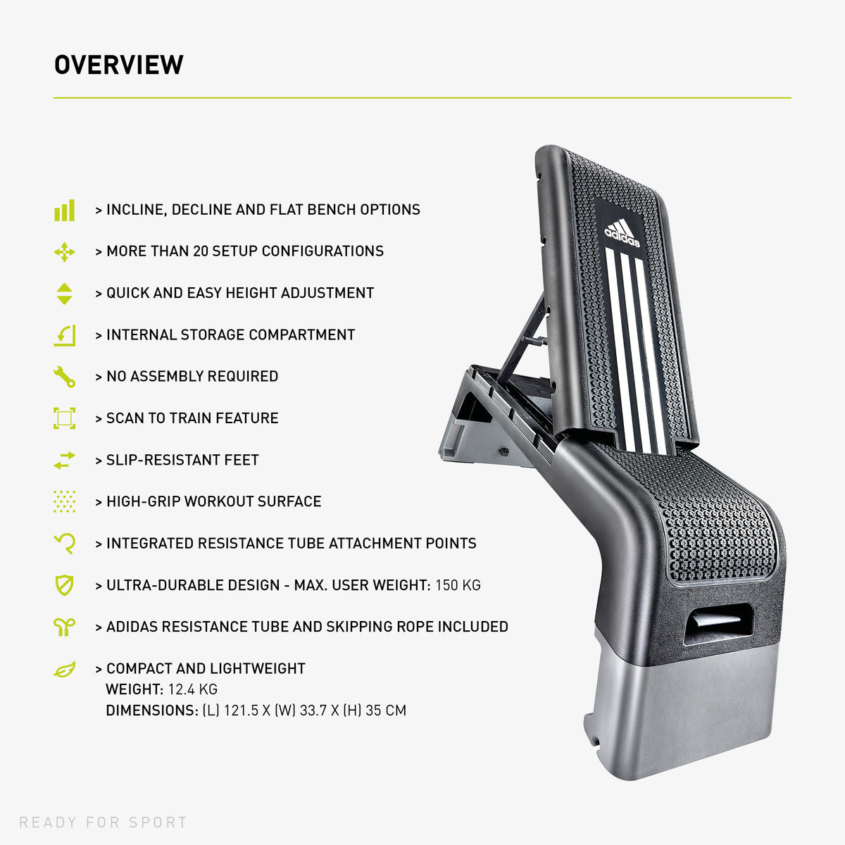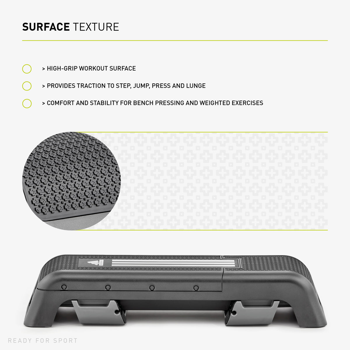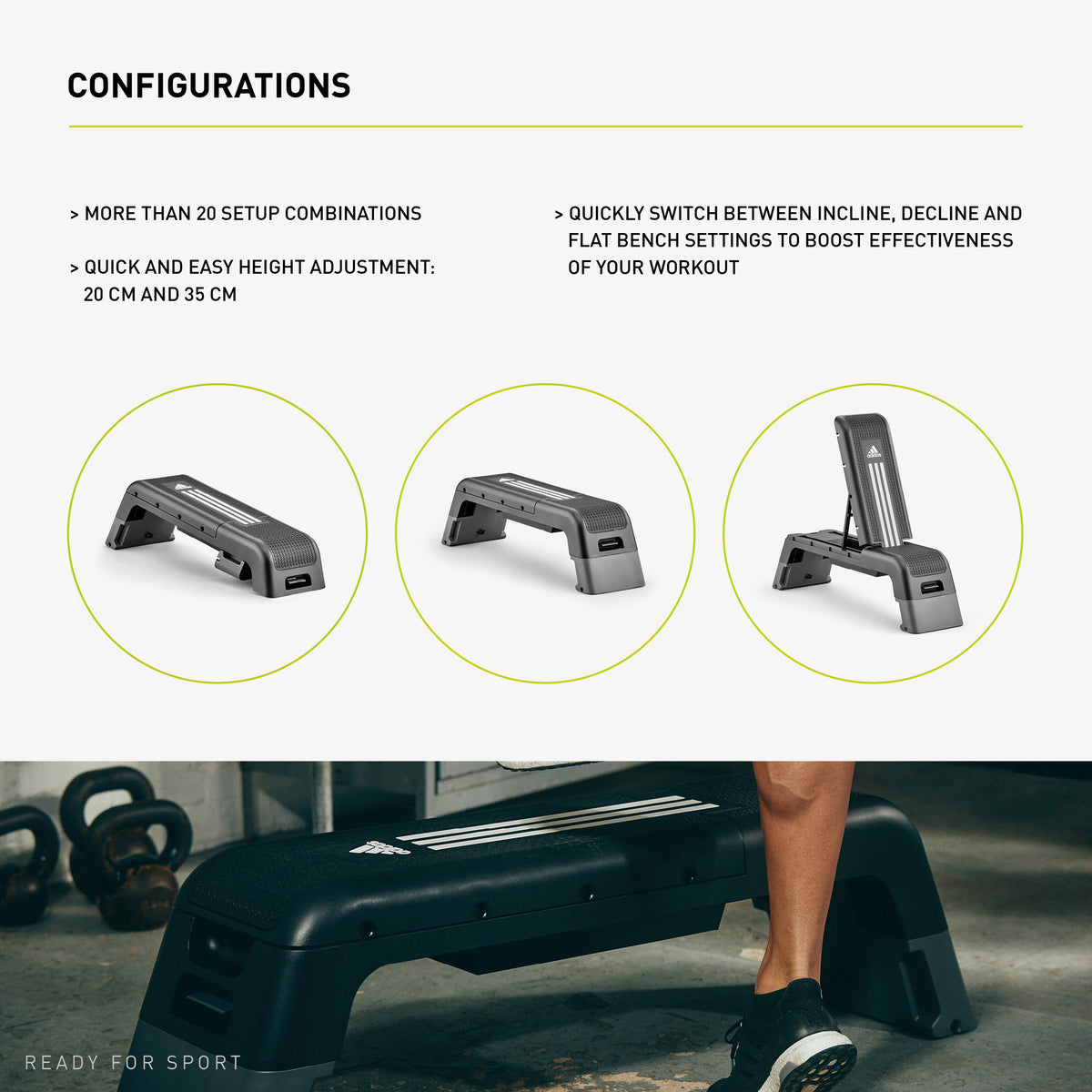 The adidas HIIT Deck combines an aerobic fitness step and weight bench into a single compact, unique, configurable workout platform. With more than 20 setup configurations built into its patented design, the HIIT Deck takes your strength and cardio workouts to the next level. Meet your definitive High-Intensity Interval Training partner.